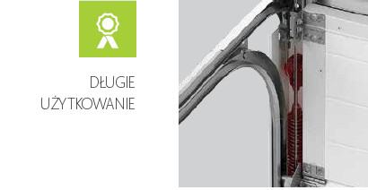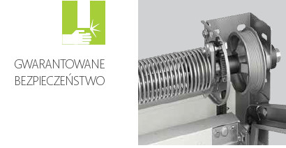 Mechanizm sprężynowy kompensuje masę płaszcza bramy, dzięki czemu nawet ciężkie bramy łatwo otworzyć i zamknąć ręcznie. Sprężyny obliczone na 25 000 cykli „podnoszenia-opuszczenia”. Odpowiada to okresowi 17 lat pracy przy codziennym otwieraniu po 4 razy w ciągu całego okresu.