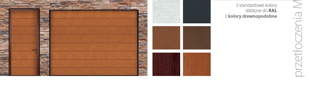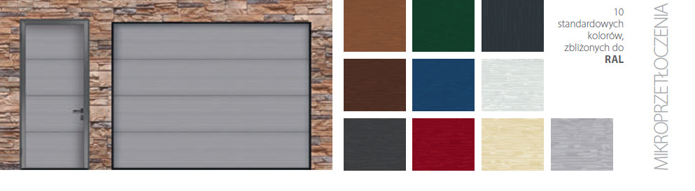 Bramy są produkowane indywidualnie dla każdego klienta w standardowej cenie (co 5 mm dla wysokości i szerokości). Szeroki wybór typów i kolorów panelu pozwala wybrać bramę pasującą do każdego rodzaju budynków. Oferujemy 5 typów paneli i rozszerzoną standardową kolorową paletę bram — 10 odcieni bez dodatkowych kosztów.
