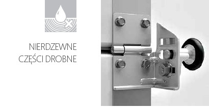 Wsporniki rolkowe i zawiasy pośrednie ze stali nierdzewnej posiadają dobre właściwości przeciwkorozyjne. Gwarantuje to niezawodne funkcjonowanie bram nawet w pomieszczeniach o zwiększonej wilgotności. Nierdzewne części drobne są zawarte w standardowym zestawie bram Classic i dostarczane bez dodatkowych kosztów.