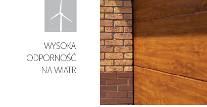 Grubość panelu — podstawą wytrzymałości i odporności bramy na obciążenia wiatrem. 4. klasa odporności na wiatr wg EN12424 — brama wytrzymuje prędkość wiatru do 120 km/godz. Potwierdzają to badania w Instytucie Rosenheim GmbH (Niemcy).