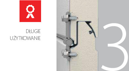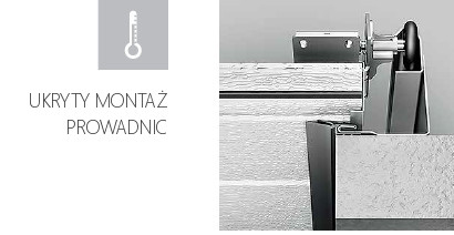 W bramach Classic jest przewidziany ukryty montaż podpór narożnych i listewki kryjącej — te części są umieszczane za otworem. Nie mają one kontaktu bezpośredniego z ulicą i nie przepuszczają chłodu do pomieszczenia. Taka konstrukcja układu prowadnic pozwala na istotne ulepszenie termoizolacyjnych właściwości bram. Montaż za otworem zapewnia dodatkowe zabezpieczenie podpór narożnych przed oddziaływaniem podwyższonej wilgotności.